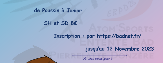 Les inscriptions ferment bientôt et il reste de la place pour vous inscrire! https://badnet.fr/tournoi/public?eventid=33035