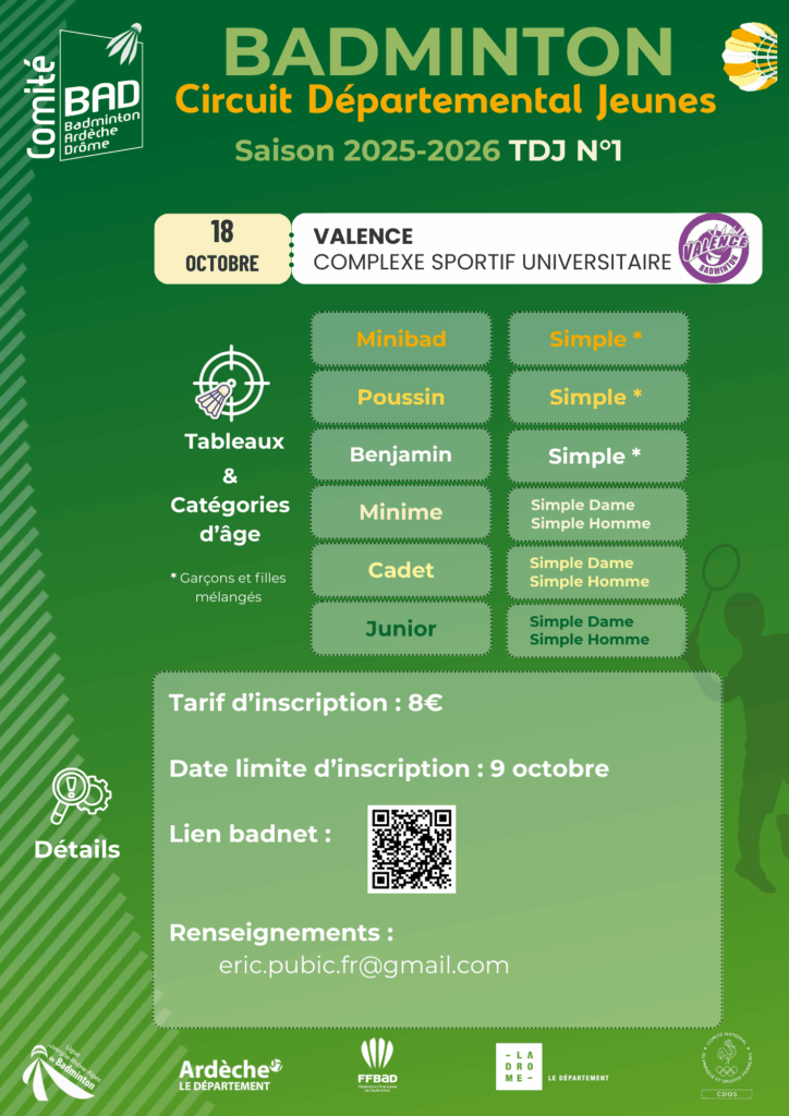 Ne tardez pas à vous inscrire https://badnet.fr/tournoi/public/informations?eventid=32953