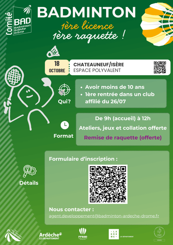Pour tout(e) primo licencié(e) de moins de 10 ans, une animation dédiée, une collation bien méritée, et une raquette offerte .